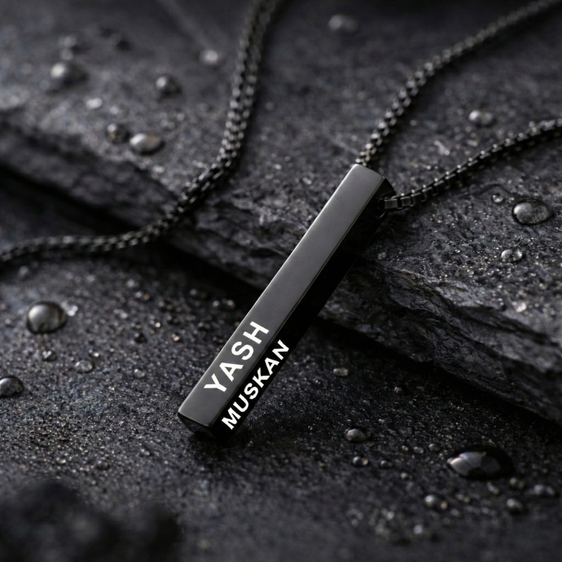 Unisex Bar Engraved Necklace with FREE Luxury Valentine Wooden Box